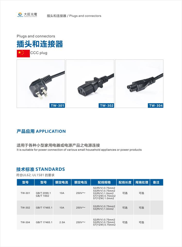 TAWANG以“科技創新,優質高效,顧客至上,持續改進”的質量方針,關注顧客需要,滿足顧客要求,不斷追求新的發展。在質量管制方面,建立以制程管控為基礎,預防為主的質量管控模式。滿足不同行業、不同應用、不同需求的使用者要求,成為電子、通訊及高科技企業的理想合作伙伴,永遠是TAWANG孜孜以求的目標和不斷超越的動力源泉!三孔插座:“左零右火上地”(地線一般與埋在地下的金屬板相連)三線插頭:有金屬外殼的用電器基本上都是三線插頭,對應于三孔插座。接地的作用:三線插頭的中間那個插頭與用電器的金屬外殼相連,當插入三孔插座時,就把金屬外殼和大地連起來了。本產品適合用于手持式電動工具、小型家用電器之電源連接。